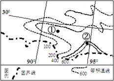 右图是甲、乙两地各月温度差和降水差(甲地各月气温减去乙地各月气温,甲地各月降水减去乙地各月降水)示意图,据此回答1-2题。