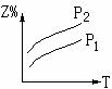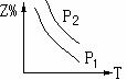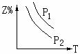 2Z(g) △H<0 ,在不同温度、不同压强(P1>P2)下,达到平衡时,混和气体中Z的百分含量随温度变化的曲线应为