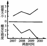 (3)研究者为了研究沙棘的抗虫机理,对河滩地进一步研究,获得如右图所示数据。在干旱的气候下,沙棘木蠹蛾的发生量的变化趋势是什么?