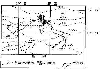 (1)图中甲处,在发展生产过程中产生的主要生态问题是 ________,受盛行风影响该现象最有可能朝 ________方向扩展。(4分) (2)图中乙处的主要生态问题是 __________。(2分) (3)1963年,图中湖泊的面积有2.5万平方千米,但到了2007年,面积不到2000平方 千米。专家预测,如果不采取切实有效的拯救措施,20年后该湖可能从地球上消失。试分析该湖泊面积缩小的主要原因。(4分)