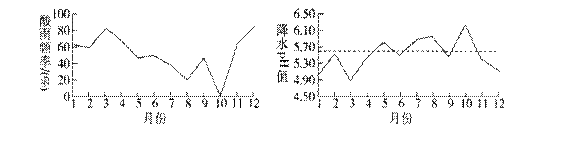 性越强。下图为测得的当地酸雨频率和降水PH值年内
