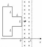如图所示,空间分布着宽为L,垂直于纸面向里的匀强磁场.一金属线框从磁场左边界匀速向右通过磁场区域.规定逆时针方向为电流的正方向,则感应电流随位移变化的关系图(i-x)正确的是