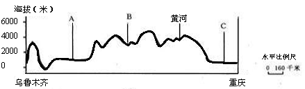 读乌鲁木齐至重庆的地形剖面示意图(15分)