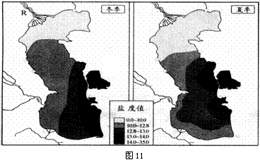 材料二 图11为里海盐度分布示意图