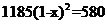 15. 某型号的手机连续两次降阶,每个售价由原来的1185元降到580元,设平均每次降价的百分率为x,则列出方程正确的是( )