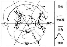 3.图中甲乙丙丁四地中,附近是冷锋并且正好经历