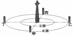 C.夏至日,正午雕像柱影子朝向丙柱一侧3米的圈内 D.一天中雕像柱的影子不会超过外圈