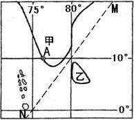 读“世界某区域轮廓图”,图中虚线MN为晨昏线,此时乙岛东北部降水量大于西南部。完成9-11题。