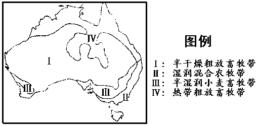 读“澳大利亚农牧带分布图”,回答25-26题。
