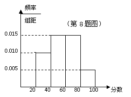 8. 如下图是一次数学考试成绩的样本频率分布直方图,