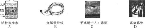 A.干冰用作人工降雨剂 B.可燃冰用作燃料C.活性炭除去冰箱中的异味 D.金刚石切割玻璃