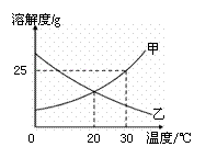 C.20℃时,甲、乙两种物质的溶解度相同D.30℃时,乙物质的溶解度比甲物质的溶解度大