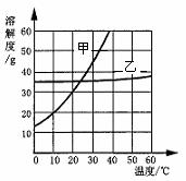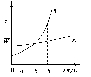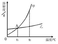 25.( )(2008年徐州市)甲、乙两种物质的溶解度曲线如