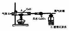 (1)若观察到A中黑色CuO变红,B中无水CuSO4变蓝,C中澄清石灰水无明显变化,则X可能是________,A中发生反应的化学方程式为________。