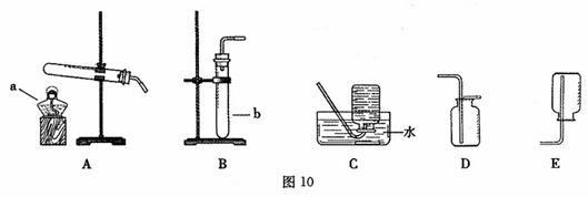 (2)写出一个实验室制取氧气的化学方程式 ,根据该反应原理,可选择图10中 (填标号,下同)与 组装一套制取氧气的装置。