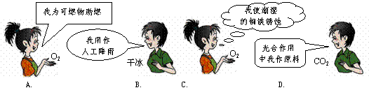 4.( ) (08广东肇庆)下面O2和CO2的自述中,属于物理性质的是