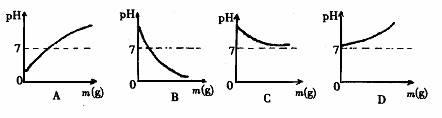 52.在一定质量的NaOH溶液中逐滴加入稀盐酸,下图中能正确表示溶液的pH变化的是(横坐标表示加入稀盐酸的质量,纵坐标表示溶液的pH)( )