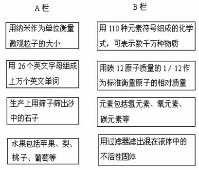 63.化学科学中许多原理与我们的生活、生产以及其他科学中的道理是一致的。请用短线将A栏与B栏相互关联的两项连接起来。