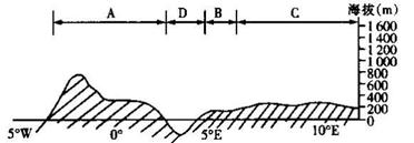 (1)注入D海域、运输最繁忙的是河流是 ,该河流流经的国家中,地中海型农业发达的是 。