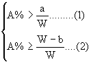 (1)取50g混合物,溶于100g热水,然后冷却至20℃。若要使A析出而B不析出。 则混合物中B的质量分数(B%)最高不能超过多少?(写出推理及计算过程) (2)取Wg混合物。溶于100 g的热水,然后冷却至10℃若仍要使A析出而B不析出。请写出下列两种情况下,混合物中A的质量分数(A%)应满足什么关系式。(以W、a、b表示) 当W<a+b时,A%_____________ 当W>a+b时, A%______________ 解析: (1)在20℃时,若要B不析出,该溶液中B的质量不能超过20 g,由于A、B质量共50g,所以这时A的质量超过30 g,大于它的溶解度,A析出。符合题意。即50 g×B%≤20 g,B%≤40%。 (2)根据题意应满足下列关系式