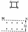 21.如图所示,直线MN下方有一宽度为2L的匀强磁场区域,磁场方向垂直纸面向里。边长为L、质量为m的导线框abcd在t=0时刻开始从MN上方某一高度处自由下落,下列所给