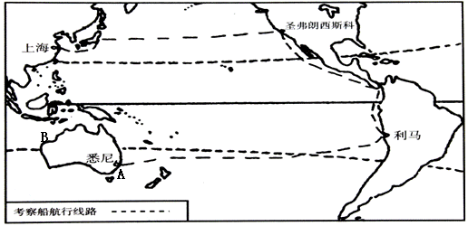 (一)我国的一艘综合科考船与今年2月20日从上海港出发,沿下图所示船行线路经圣弗朗西斯科--利马--悉尼,再对澳大利亚大陆