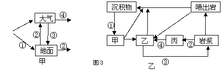 8.图乙为地壳物质循环简图,各箭头表示地壳物质循环方向,①②③④表示各类地质作用,下列叙述正确的是( )