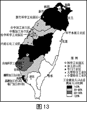 35. 根据图13、14所示信息,分析台湾工业分布的特点和成因。