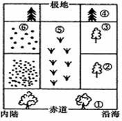 73.③为温带落叶阔叶林带,而同纬度的⑤为草原带,⑥为荒漠带,自然景观从③→⑤→⑥的更替体现了地理环境的________________地域分异规律,该规律的形成是以________为基础的,表现最典型的区域是_____(低、中、高)纬度地区。