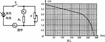 10.(8分)2010年世博会在上海举行,本次世博会大量采用低碳环保技术,太阳能电池用作照明电源是其中的亮点之一.硅光电池是太阳能电池的一种,某同学为了测定某种硅光电池的电动势和内电阻,设计了如图甲所示电路,图中与A.串联的定值电阻的阻值为R0,电流表视为理想电表,在一定强度的光照下进行下述实验: