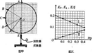 (1)第一组同学通过数据采集器采集小球运动半周内的A、B、C、D、E五个位置的数据,选择以图象方式显示实验的结果,所显示的图象如图乙所示.图象的横轴表示小球距E点的高度h