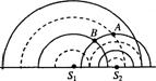 (2)(4分)如图所示,Sl、S2是两个水波波源,某时刻它们形成的波峰和波谷分别用图中实线和虚线表示.下列说法中正确的是