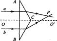 4分)如图所示,OO'为等腰棱镜ABC的对称轴.两束频率不同的单色光a、b关于OO'对称,垂直AB面射向棱镜,经棱镜折射后射出并相交于P点.则此棱镜对光线a的折射率