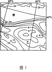 图1为我国西部某区域7月均温(℃)等值线图,据图回答1-3题。