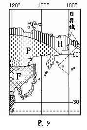 图9为“亚洲东部某区域陆地自然带分布示意图”,