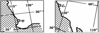 (3)乙图所示的天气系统分布在 半球(填南或北),在甲图的陆地和海洋这两个区域中,能形成乙图所示天气系统的是 (填陆地或海洋),另外一个区域不能形成这种天气系统的原因是 。(4分)