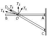 质量分布均匀的杆AB、CD,分别可绕A、C轴在竖直面内自由转动,O为铰链.当它们在图示位置恰好平衡时,CD杆对AB杆的作用力方向可能是图中的: