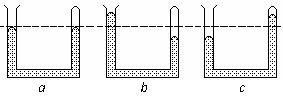 12.U形管的右侧封闭着一定质量的理想气体,当它处于如图所示的a、b、c三种状态时,比较其温度Ta、Tb、Tc的大小.下列说法中正确的是: