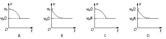 14.汽车在平直公路上以速度v0匀速行驶,发动机功率为P,快进入闹市区时,司机减小了油门,使汽车的功率立即减小一半并保持该功率继续行驶.设汽车行驶时所受的阻力恒定,则下面四个图像中,哪个图像正确表示了司机从减小油门开始,汽车的速度与时间的关系: