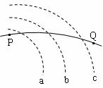 如图所示,虚线a、b、c表示电场中的三个等势面,相邻等势面间的电势差相等,实线为一带正电的质点仅在电场力作用下通过该区域时的运动轨迹,P、Q是这条轨迹上的两点.由此可知: