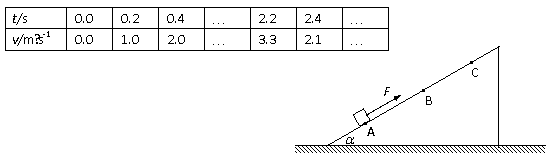 32.如图所示,一光滑斜面固定在水平地面上,质量m=1kg的物体在平行于斜面向上的恒力F作用下,从A点由静止开始运动,到达B点时立即撤去拉力F.此后,物体到达C点时速度为零.每隔0.2s通过速度传感器测得物体的瞬时速度,下表给出了部分测量数据.
