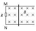 ,质量m=0.1kg,整个装置处于竖直向下的匀强磁场中,磁感强度B=0.5T.现在金属杆上施加一垂直于杆的水平外力F,使R上的电压每秒钟均匀地增加0.05V,且电流方向由M点流向N点,设导轨足够长,则: