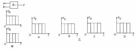 如图甲所示为某一门电路符号及输入端A、B的电势随时间变化关系的图象,则图乙中能正确反映该门电路输出端电势Y随时间变化关系的图像是[