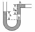 如图所示,两端开口的弯折管竖直放置,三段竖直管内各有一段水银柱将两段空气柱A、B封闭在管内,已知大气压强为P0(Pa),左管内水银柱长h1(m),右管内水银柱长h2(m),水银的密度为ρ,则空气柱A的压强为_____________
