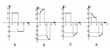 20.一个位于竖直平面内的正方形闭合导体框,其上下两条边水平,从静止开始下落一定高度后,垂直穿越一个磁感线沿水平方向且与线圈平面垂直的有界匀强磁场区域,该区域上下边界也水平。下图是自导体框开始下落到完全穿越磁场区域的过程中,导体框中的感应电流随时间变化的图像,其中肯定与实际不相符的是(忽略空气阻力的影响,线圈始终在竖直平面内平动).[ ]