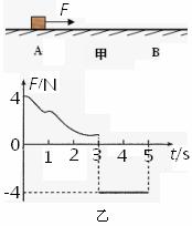 24.如图甲所示,一质量为m =1kg的小物块静止在粗糙水平面上的A点,从t = 0时刻开始,物体在受如图乙所示规律变化的水平力F作用下向右运动,第3s末物块运动到B点时速度刚好为零,第5s末物块刚好回到A点,已知物块与粗糙水平面间的动摩擦因数μ= 0.2,则物体从A运动到B间的平均速度为____________m/s,水平力F在5s时间内对小物块所做功的功率________W。