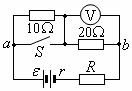 图中S断开时,伏特表示数为6V,当S闭合后,ab间电压可能是:( )