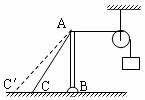 如图所示,木棒AB可绕B点在竖直平面内转动,A端被绕过定滑轮吊有重物的水平绳和AC绳拉住,使棒与地面垂直。棒、绳的质量及绳与滑轮的摩擦可忽略。如果把C端拉至离B的水平距离远一些的C′点,AB仍保持沿竖直方向,装置仍平衡。那么AC绳对A施加的拉力T和AB棒所受到压力N的变化情况是:(