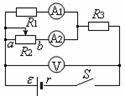 为电源电动势,r为电源内阻,R1和R3均为定值电阻,R2为滑动变阻器。当R2的滑动触点在a端时合上开关S,此时三个电表A1、A2和V的示数分别为I1、I2和U。现将R2的滑动触点向b端移动,则三个电表示数的变化情况是:(