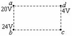 a、b、c、d是匀强电场中的四个点,它们正好是一个矩形的四个顶点。电场线与矩形所在平面平行。已知a点的电势为20 V,b点的电势为24